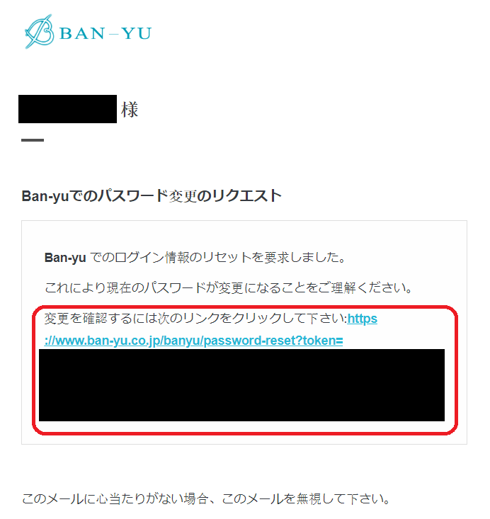 パスワード変更用のリンクが付いたメールが届いてから
