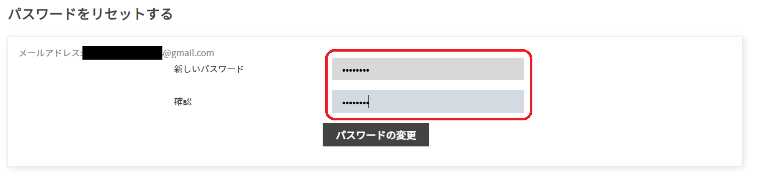 「確認」の欄のどちらにも入力して「パスワードの変更」を