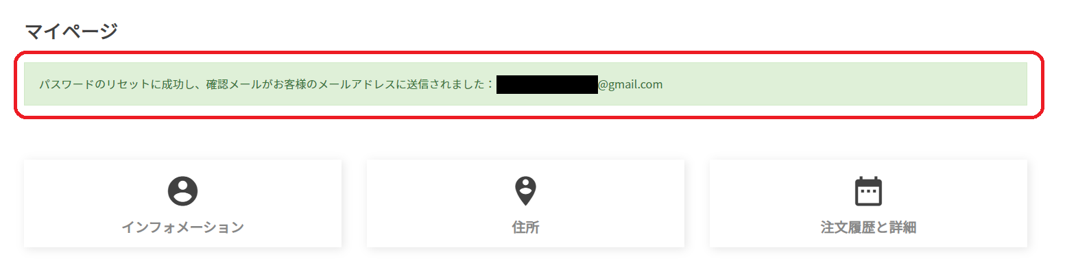 同時に登録したメールアドレス宛には、パスワード変更完了